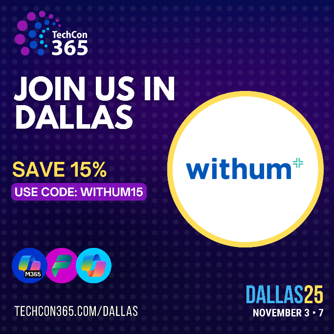 Join Withum, a proud sponsor, at the conference that brings together the world’s leading experts in Microsoft 365, Power Platform, Azure and AI – November 3-7 in Dallas.