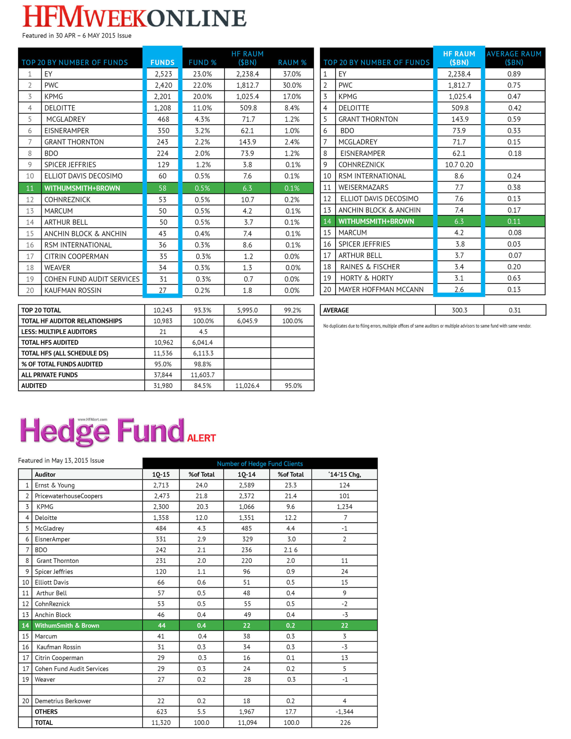 Hedge Fund Alert and HFMWeek Names WithumSmith+Brown One of the Top Hedge Fund Auditors