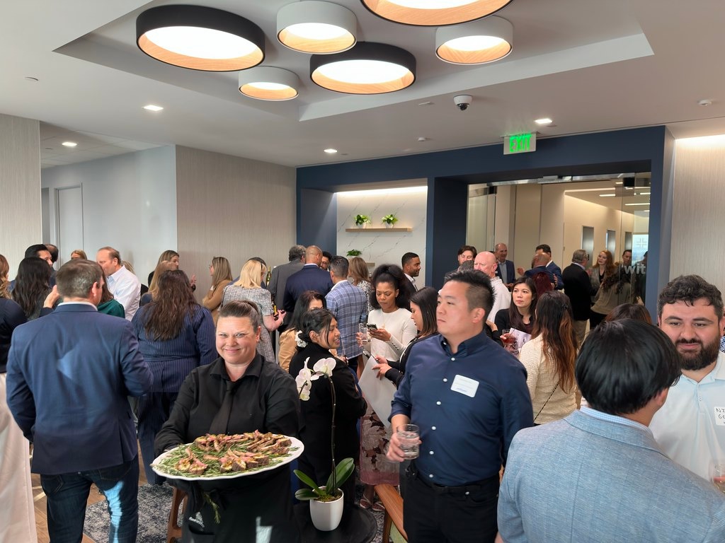 The space, which officially opened in December 2025, offered guests sweeping panoramic views of the region as they toured the thoughtfully designed team collaborative spaces, modern amenities and community spaces that echo Withum’s culture and values. The striking backdrops of the Irvine business hub, Orange County canyons, San Joaquin Hills, Saddleback and San Bernardino Mountains and downtown Los Angeles mirrored the evening’s energy.